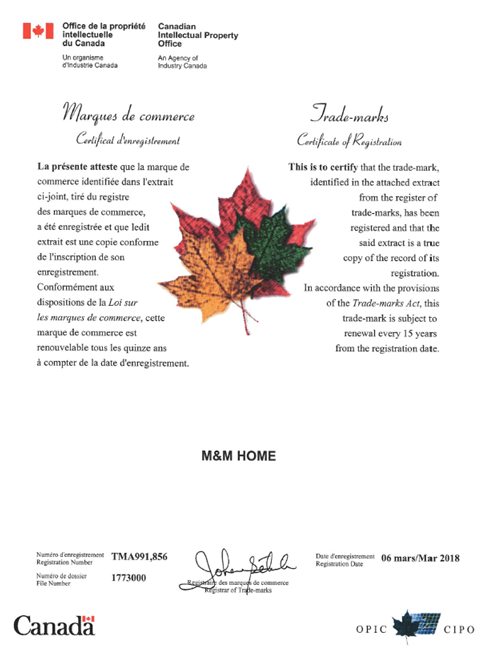由于加拿大是实用主义国家,商标只有在具体的商品项目上使用或意向使用,才能获得当地法律的保护。经协商,在明确了SM家纺公司设立该品牌的初衷以及未来近10年的规划后,SM家纺同意向美国玛氏公司作出承诺,“M&M HOME”品牌是为家纺而生,不会跨越到食品领域,也不会在食品领域申请与“M&M’S”近似商标。对方了解到我们的真实意图后,也放弃了异议申请,双方达成合意,继续在各自的领域深耕经营。