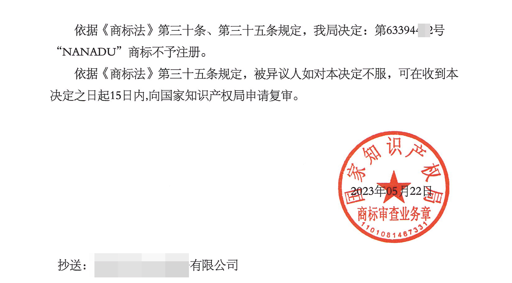 本案现已审结完毕,商标局经审理裁定:争议商标“NANADU”不予注册。
