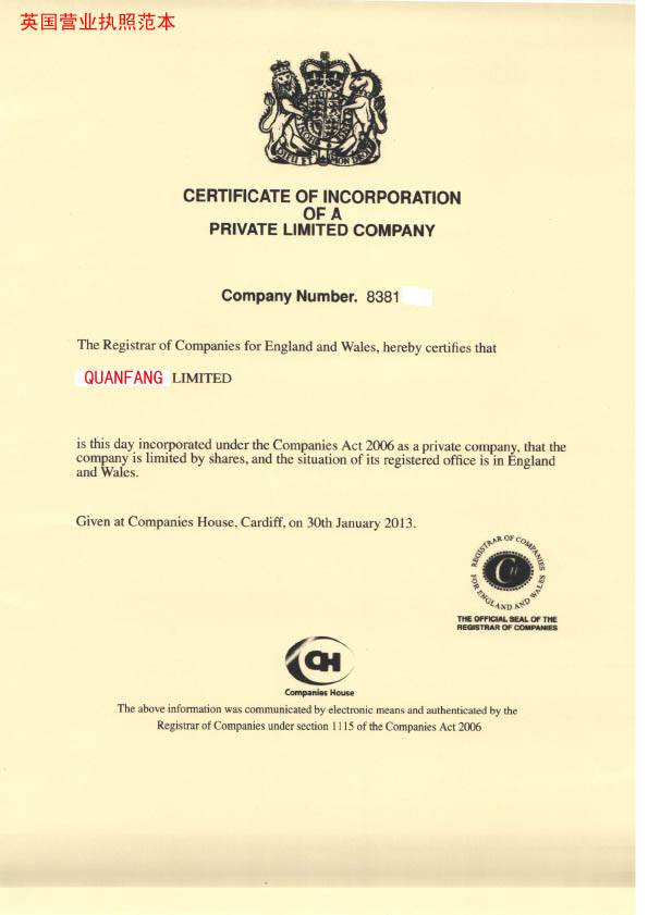 2、确定公司中英文名称、公司注册资本1英磅-100万英磅;确定股东和董事以及董事和股东间的股份分配比例!
